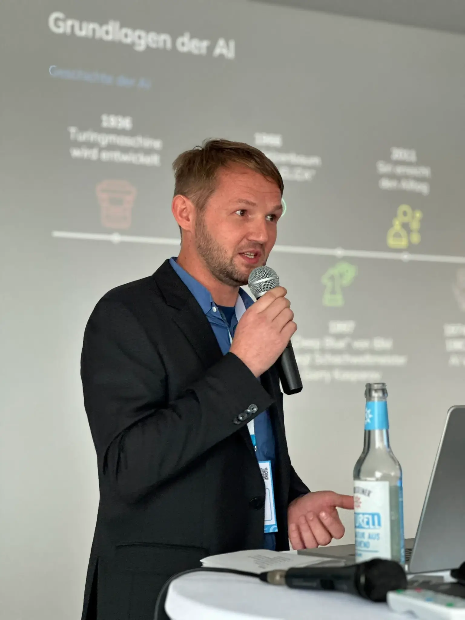 The presentation by Levitan Novakovski, Head of AI & Development at elio GmbH, was a real highlight for the visitors. With his "AI Masterclass", he not only shed light on artificial intelligence, but also provided many a chuckle. Novakovski charmingly and humorously explained that we humans are often "framed" - similar to an AI that is only trained with certain data and derives probabilities from it. An idea that made the audience think.