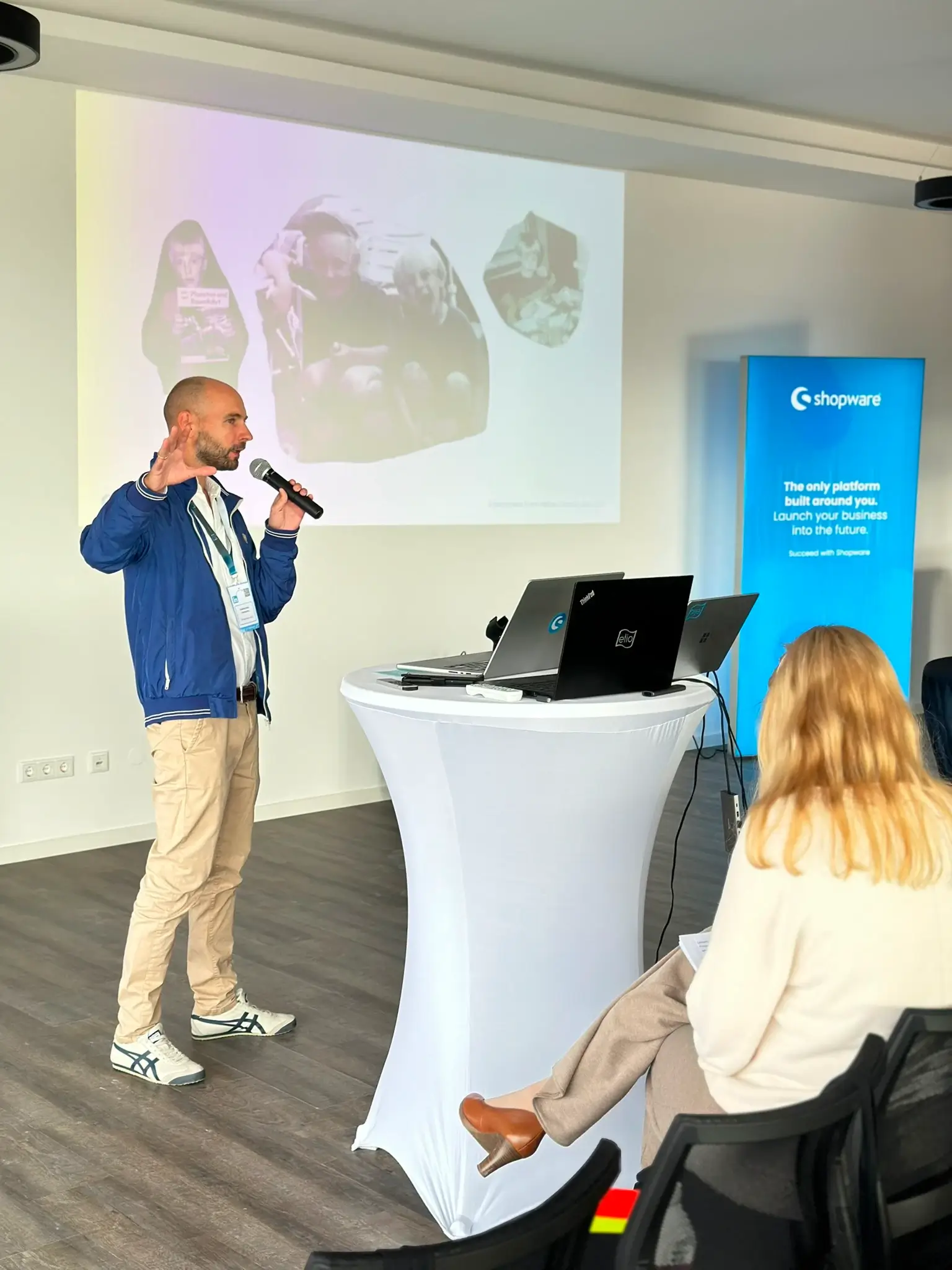 Sascha Vorderstemann, Founder & CEO of elio GmbH, opened the event with an inspiring presentation on the possibilities that go far beyond standard solutions. Using real customer projects, he showed how versatile online shops can be when elio's expertise and Shopware's functions are combined.