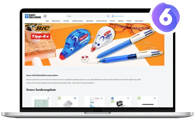 KAUT-BULLINGER GmbH & Co KG has been a traditional office supplies company based in Taufkirchen near Munich since 1794. In view of the growth, the original online presence on Pimcore was no longer sufficient, which is why the decision was made to switch to Shopware 6. elio took over the migration and connection of the necessary peripheral systems for a smooth transition.